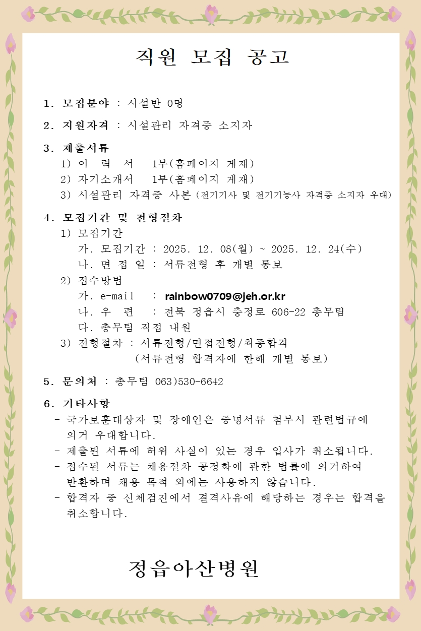 - 조리원 모집 공고