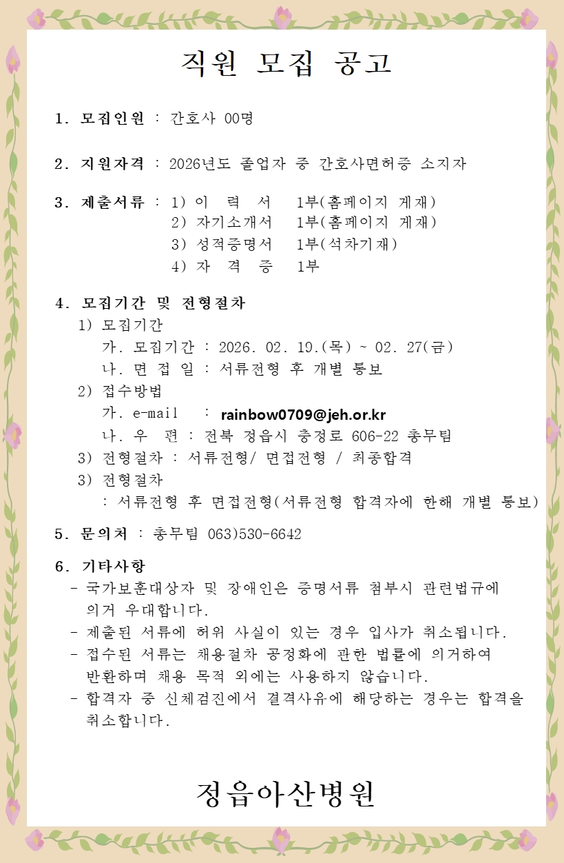 | [마감]간호사 모집 공고 | ||