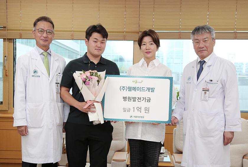 부동산개발회사인 ㈜웰메이드개발 김원철 대표가 건강증진센터 등 병원 발전을 위하여 1억 원을 후원했다. 2024년 9월 2일 진행된 감사패 증정식에는 배우자 박선영 님, 박승일 병원장, 최재원 대외협력실장 등이 참석했다.