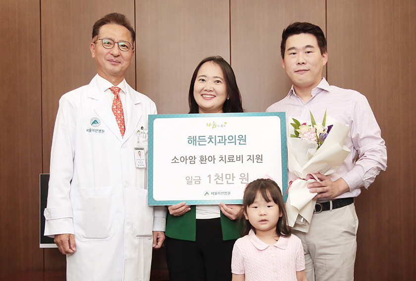 해든치과의원 예상훈 원장이 불우환자지원기금 1천만 원을 후원했다. 2024년 10월 10일 진행된 감사패 증정식에는 예상훈 원장, 배우자 문수정, 자녀 예다현, 최재원 대외협력실장 등이 참석했다.