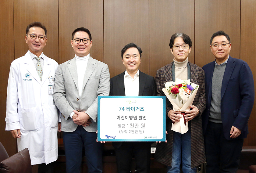 1974년생 기업인 모임인 74타이거즈에서 어린이병원 발전을 위해 병원발전기금 1천만 원을 후원했다. 74 타이거즈는 2023년부터 지속적 으로 후원하고 있고 누적 후원금은 총 2천만 원이다. 2024년 11월 20일 진행된 감사패 증정식에는 신택수 (주)큰길 대표, 문진욱 (주)제이엠피엔 대표, 박지훈 (주)리한 대표, 원종은 (주)대륭 대표, 최재원 대외협력 실장 등이 참석했다.